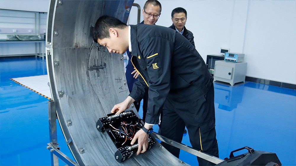 2024年4月17日-18日,上海材料研究所有限公司無損檢測事業部蔣建生主任、王森副主任,銷售市場部滕健主任一行受邀蒞臨我司考察指導,先后參觀了我公司埋地管道實訓基地、無塵車間、研發中心實驗室等,對我公司自主研發的無線式磁粉探傷儀、管道磁粉探傷儀、角焊縫磁粉探傷儀、腐蝕測厚機器人、ACFM交流電磁場檢測儀等設備進行性能測試,均達到預期效果,對我公司研發、生產及售后能力給予高度評價。