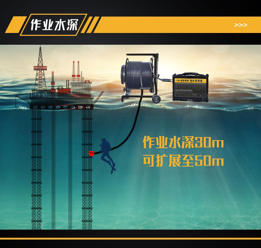 3、可檢測表面 350℃高溫中的非疲勞裂紋;可用于水下500m 深度結構缺陷檢測;