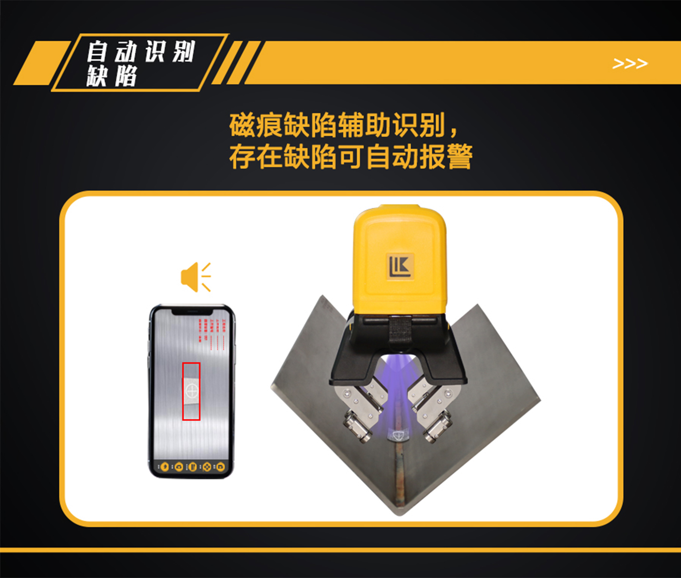 (2)自動識別缺陷:磁痕缺陷輔助識別,發現缺陷可語音報警,并在圖像中自動標記出缺陷位置,將有缺陷的圖片保存到手持終端;