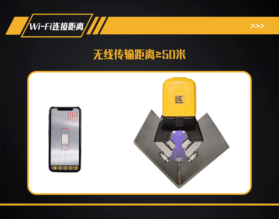 11、探頭內部裝有500萬像素攝像頭,手機、平板電腦或AR眼鏡等手持終端安裝APP軟件,通過Wi-Fi與探頭鏈接,手持終端實時顯示探傷狀態;